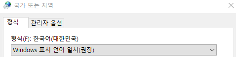 2. 형식 : Windows 표시 언어 일치(권장) 을 선택하면 한국어(대한민국)이 나옵니다. 안나온다면 한국어(대한민국)을 선택해줍니다!