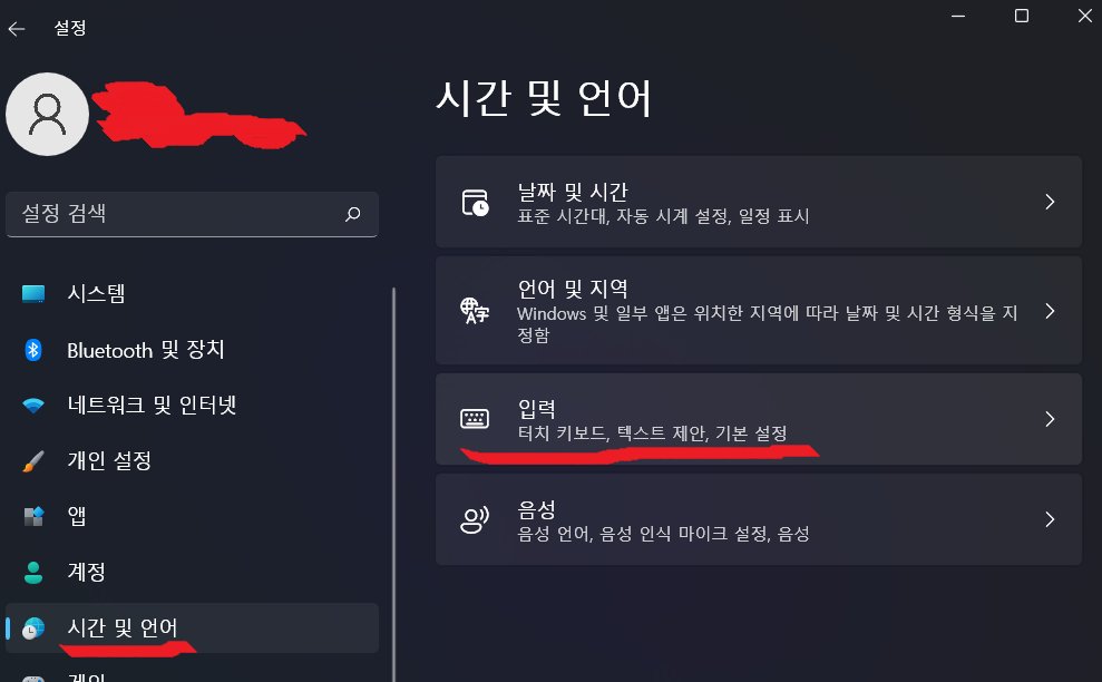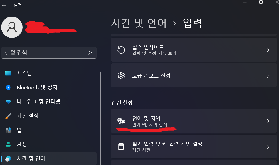 (윈도우 하단에 돋보기 클릭 후 "언어설정" 을 쳐서 한번에 가도 됩니다.)