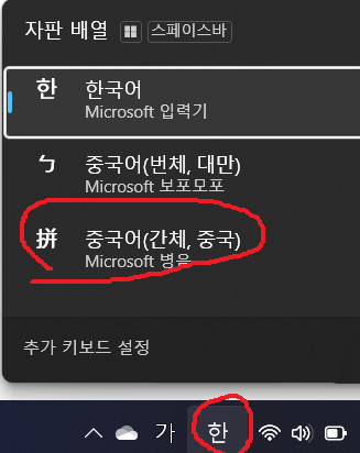이상 윈도우에서 중국어 병음 사용방법 및 변환 단축키