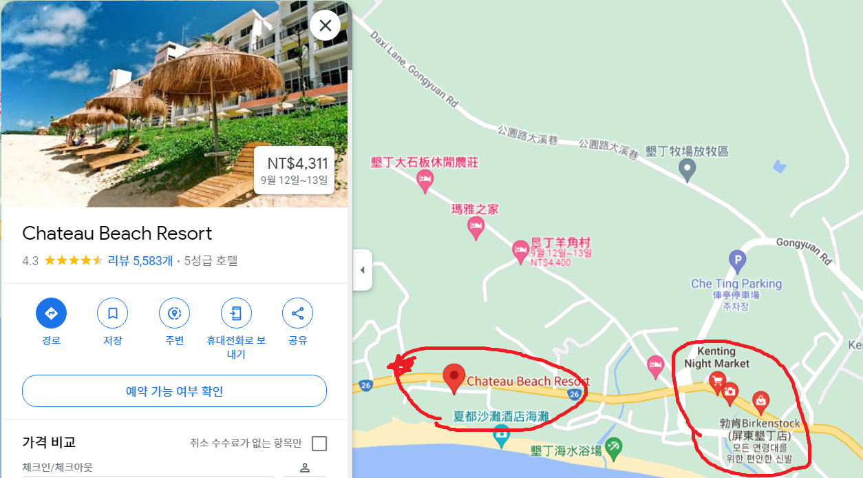 보이시나요... 구글맵으로도 찾아보니 그자리에 있네요... 저 리조트 근처.. 경찰차가 ㅠㅠ