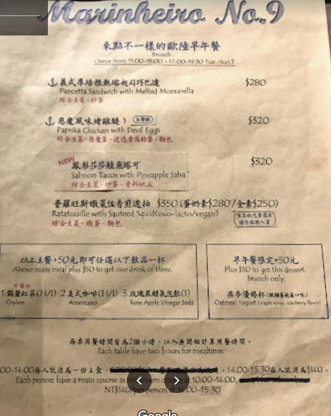 Marinheiro No.9 水手9號|早午餐 Brunch |私廚料理|船藝品| · 10583 대만 Taipei City, Songshan District, Fuj
