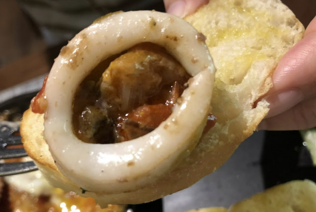 크으... 근접샷좀 찍어봤습니다. 빵 자체가 맛있기도 했고 소스와 오징어가.... 정말 맛있었어요~!
