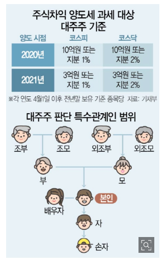 이번에 제기된 대주주요건 및 주식 양도 소득세관련 부과 대상은 아래와 같아요.