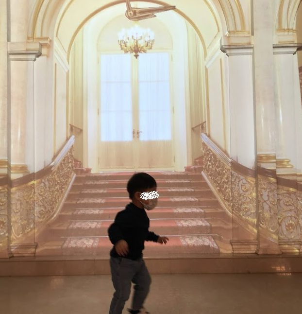 무대를 만들어놓고 프로젝트 빔으로 배경을 쏴서 궁처럼 보여줬어요 ㅎㅎ