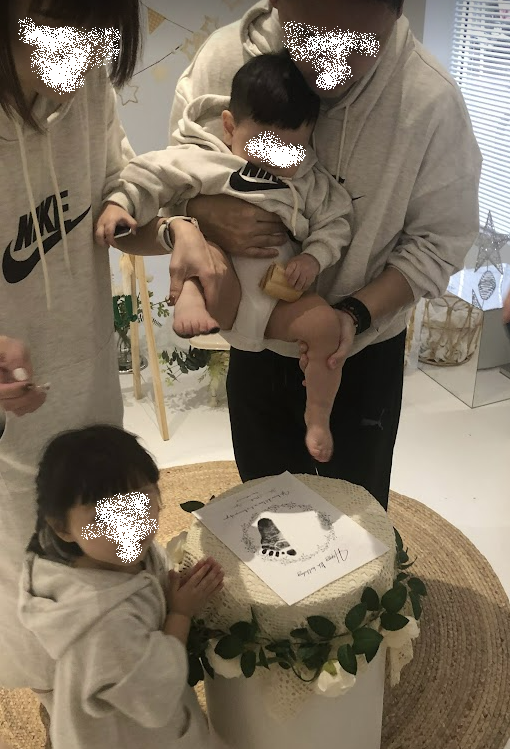 자 하이라이트 돌잡이가 끝나고 이제 마지막으로 발 프린팅을 해줍니다.
