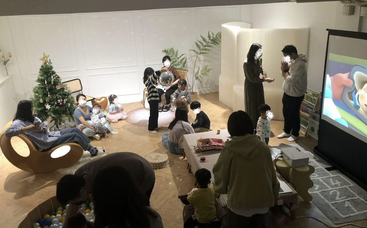 여기서는 빔 프로젝트도 있어서 아이 영상을 만들어서 틀어줬어요