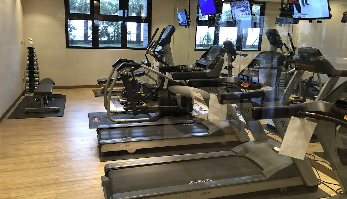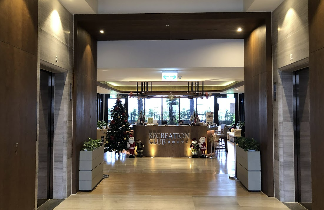 5층에 올라오면 맨 처음에 리셉션이 보여요 여길 중심으로 야외 수영장, 공용목욕남탕/여탕, 헬스장, 놀이방1/2 가 있습니다.