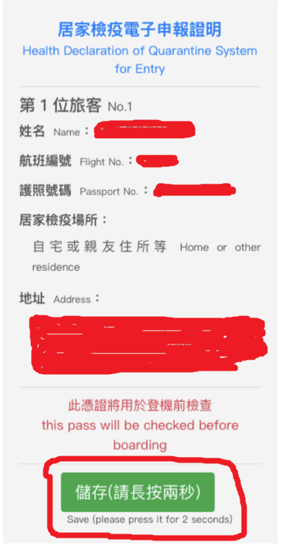 이걸 대만에 입국하고나서 보여주면 됩니다!!! 일단 한국에선 저장까지만 하시면 끝난거예요!