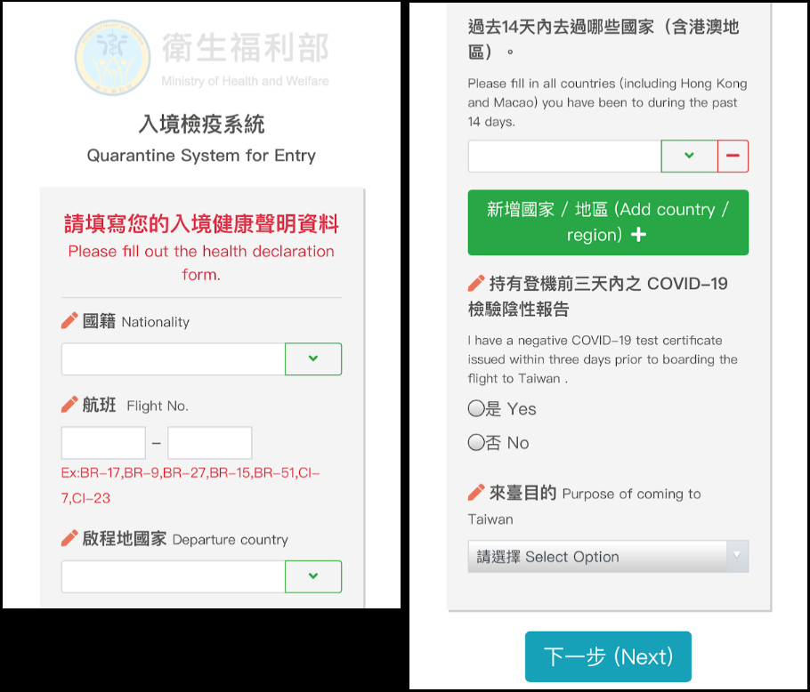 여기서 보셔도 되고, URL https://hdhq.mohw.gov.tw/ 에서 작성하시면 됩니다.