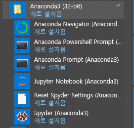 아나콘다 설치된 파일 목록중에 Jupyter Notebook (Anaconda3) 보이시나요?