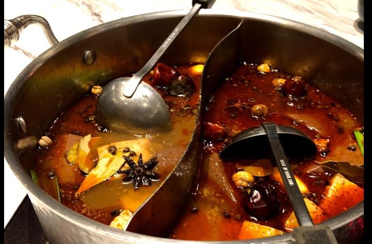特選青花椒、四川大紅袍、燈籠椒…等多種辣椒,按照黃金比例去調配,延襲古法層層調製工法,取出溫和不嗆的紅油精華做為麻辣鍋的基準,加入大骨燉煮的特製湯頭,搭配軟Q彈牙、CAS認證屠