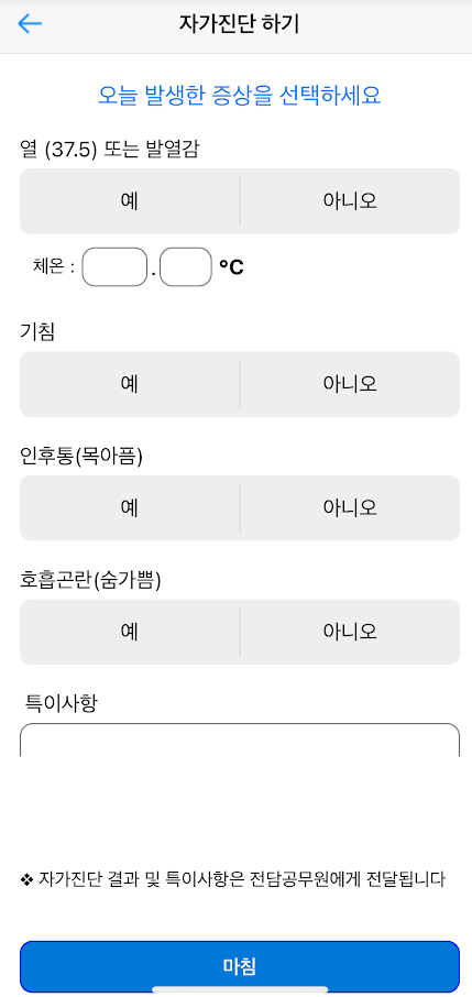 다운받은 자가격리APP 에 자기진단 하루에 2번(10:00, 20:00 정도) 하라는 당부