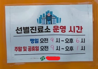 선별진료소 운영 시간은 아래와 같아요! 주말도 하다니 너무 좋네요!! 관계자분들은 힘드시겠지만 ㅠㅠ