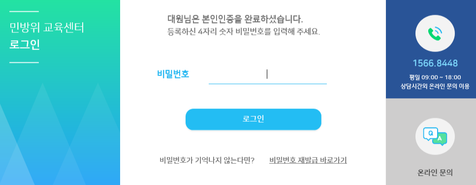 인증이 완료되면 ID는 폰번호고 패스워드 4자리를 입력하고 나와요~