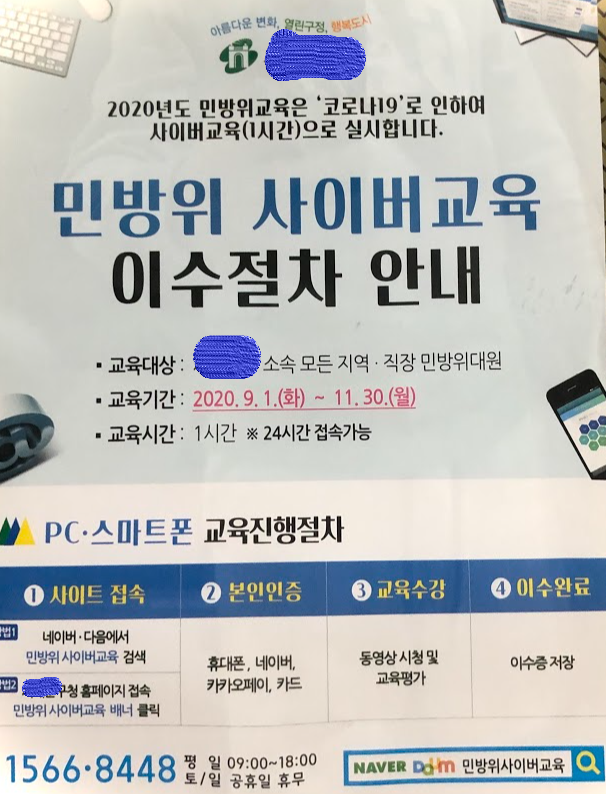 코로나로 인해 집합교육이 사이버교육으로 대체 되었다ㅠㅠ. 아파트 공지에 붙어있어서 사진 찰칵~