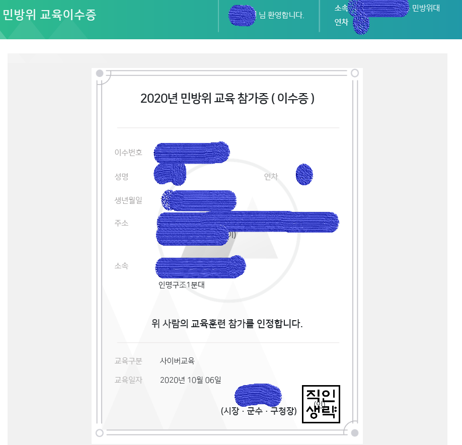 대한민국 민방위 여러분~ 꼭 이수해서 과태료내지 말아요!!